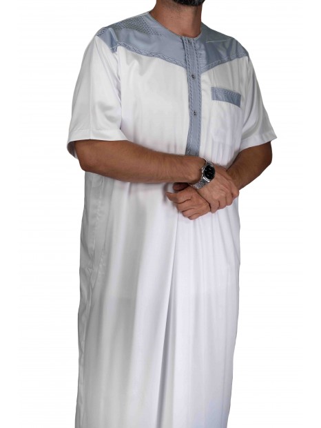 Qamis Blanc et Gris Manches courtes – Al Atlas